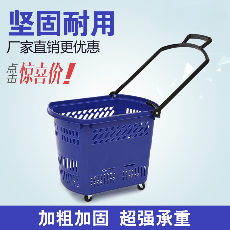 超市购物篮拉杆带轮超市购物筐塑料手提购物篮加厚商场购物拖车
