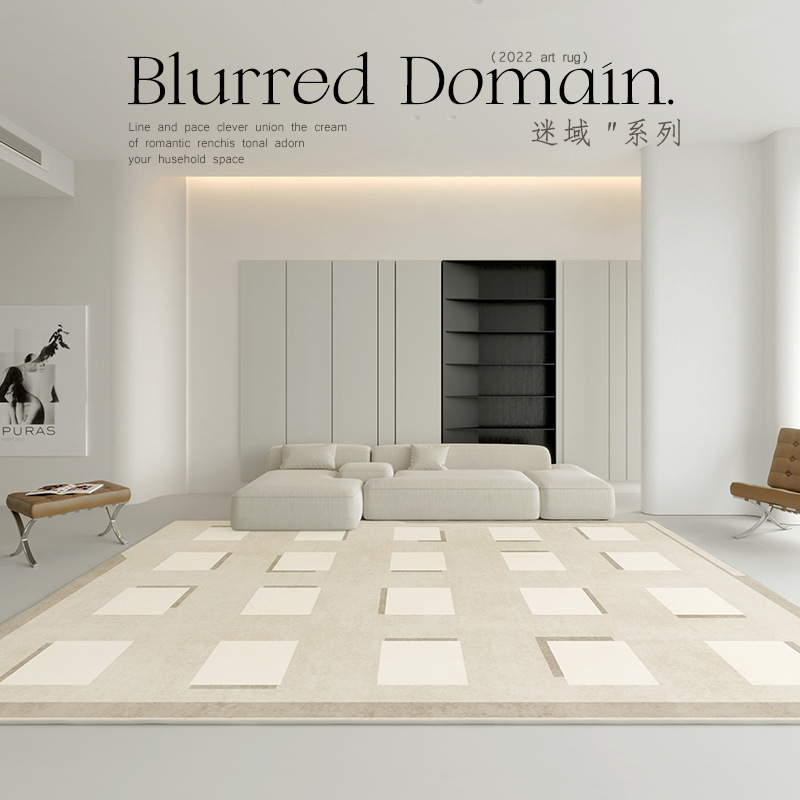 简约奶油风客厅地毯家用防滑耐脏水晶绒床边毯沙发茶几易打理地垫