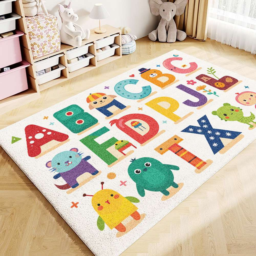 法兰绒客厅地毯慢回弹海绵地毯家用卡通字母客厅大面积仿羊绒地毯