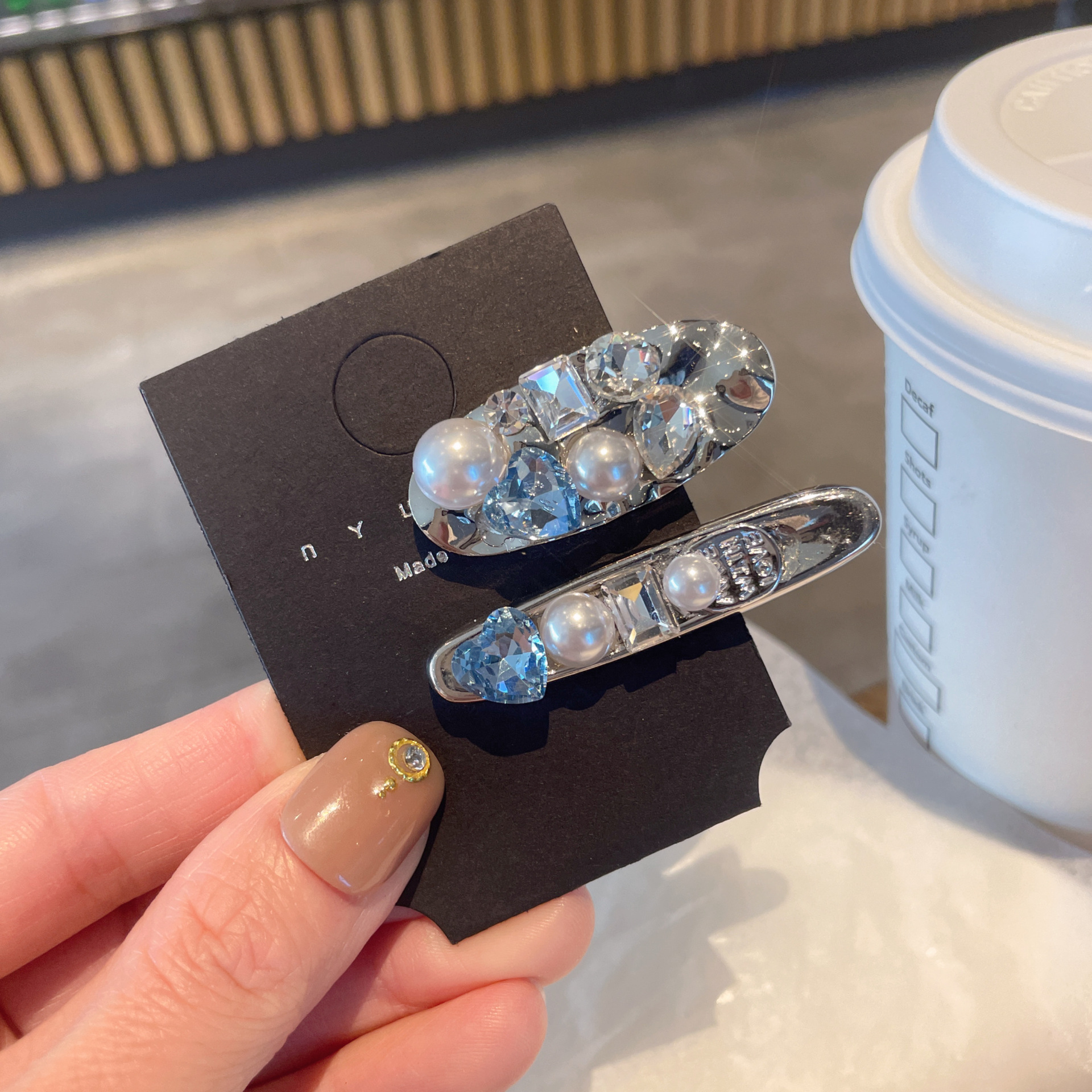 甜酷水钻珍珠少女风一字夹鸭嘴夹时尚碎发夹刘海夹侧边夹发卡发饰