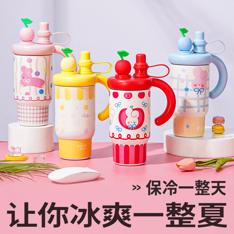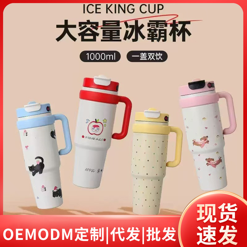 高颜值保温杯大容量冰霸杯316吸管杯汽车杯车载办公把手保冷水杯