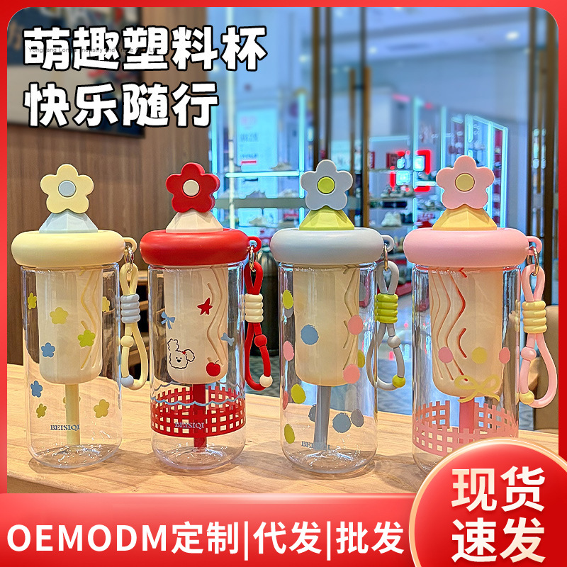 2026新款大容量塑料杯可爱卡通吸管水杯学生高颜值茶水分离随手杯