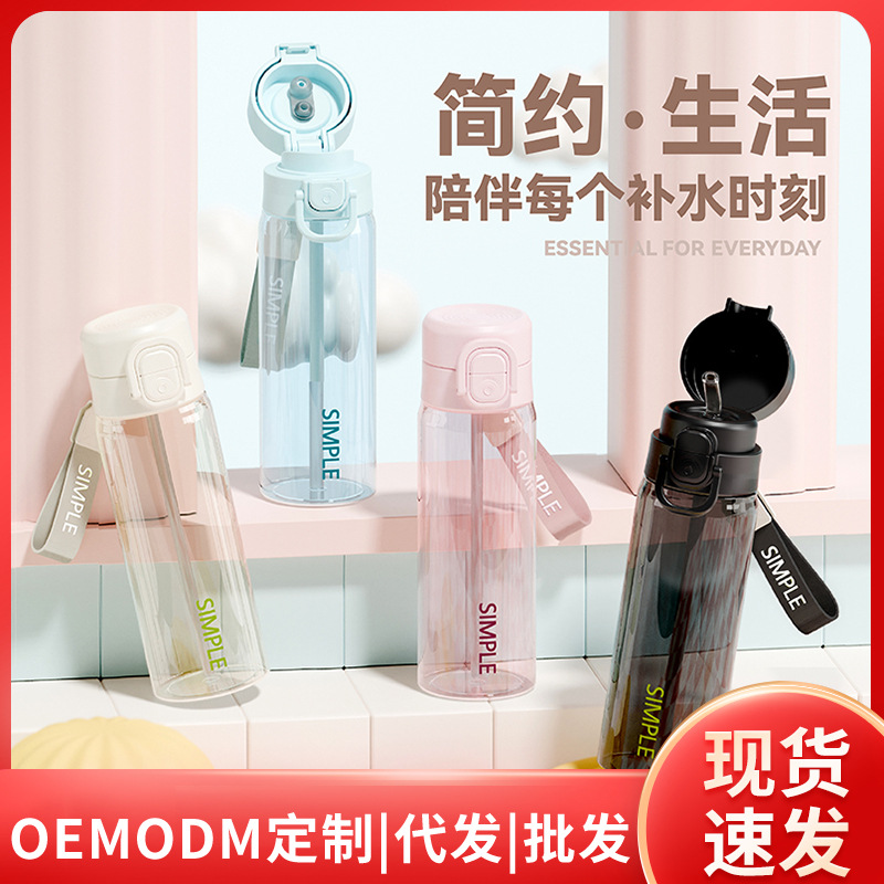 新款简约运动塑料杯夏季大容量男女耐高温双饮吸管杯学生上学杯子