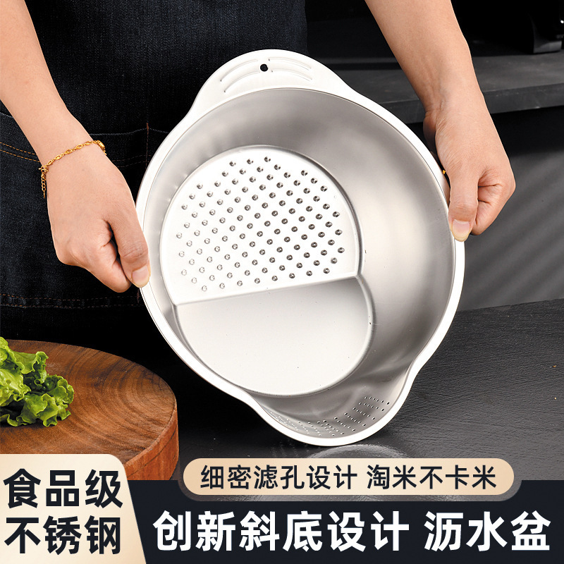 304不锈钢沥水篮淘米盆神器洗米筛洗菜篮漏盆果蔬厨房家用多功能