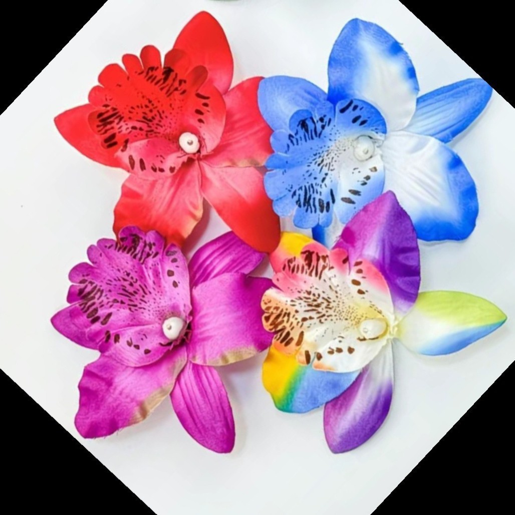 跨境双朵仿真蕙兰花边夹旅游度假发饰海边沙滩头花发夹沙滩风绢花