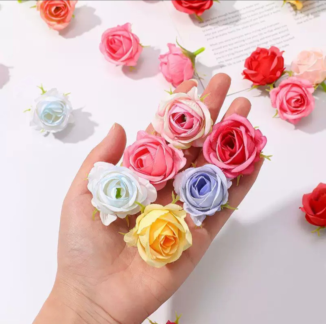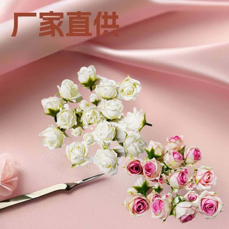 跨境小玫瑰花头假花diy花苞婚庆布置仿真花材料摄影拍照道具花卉