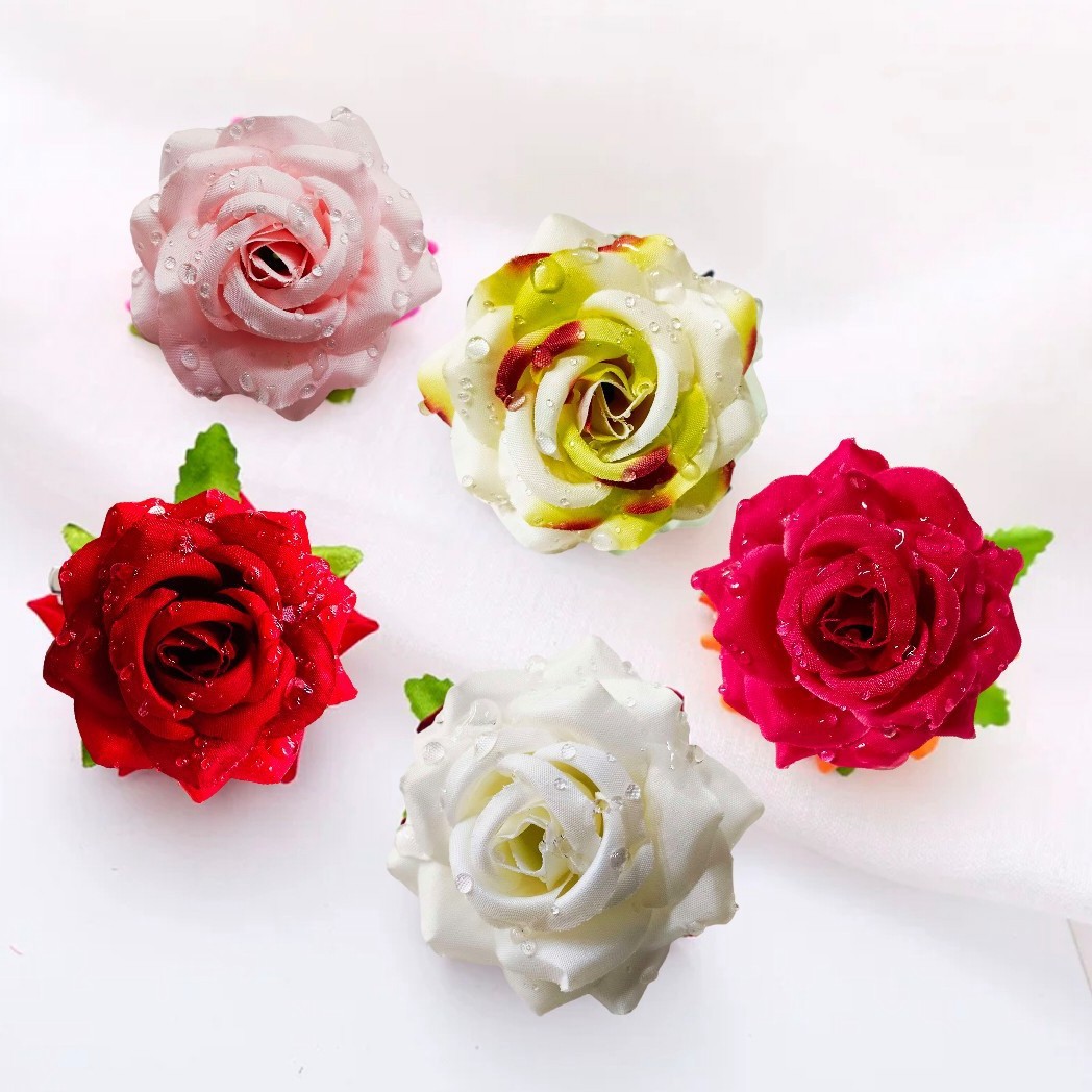 6厘米露珠玫瑰水滴五角玫DIY手腕花玫瑰花头礼盒装饰假花手工