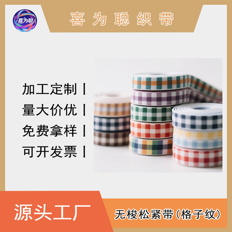 源头工厂定制无梭加厚高弹力松紧带服饰辅料格子纹彩色批发高弹性