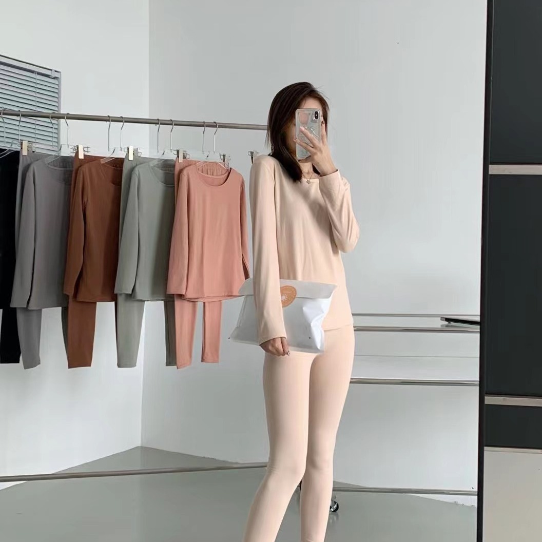 闺蜜哒恒温美肤套装2.0秋衣秋裤女保暖内衣弹力圆U领薄款打底衫女