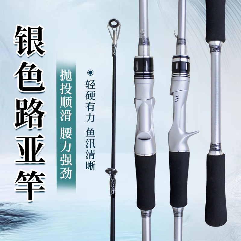 跨境供货银色路亚竿M调直柄枪柄远投竿抛竿插节黑鱼翘嘴竿海竿