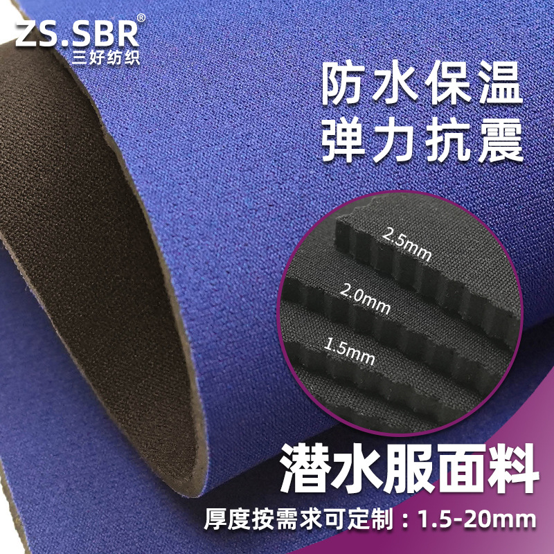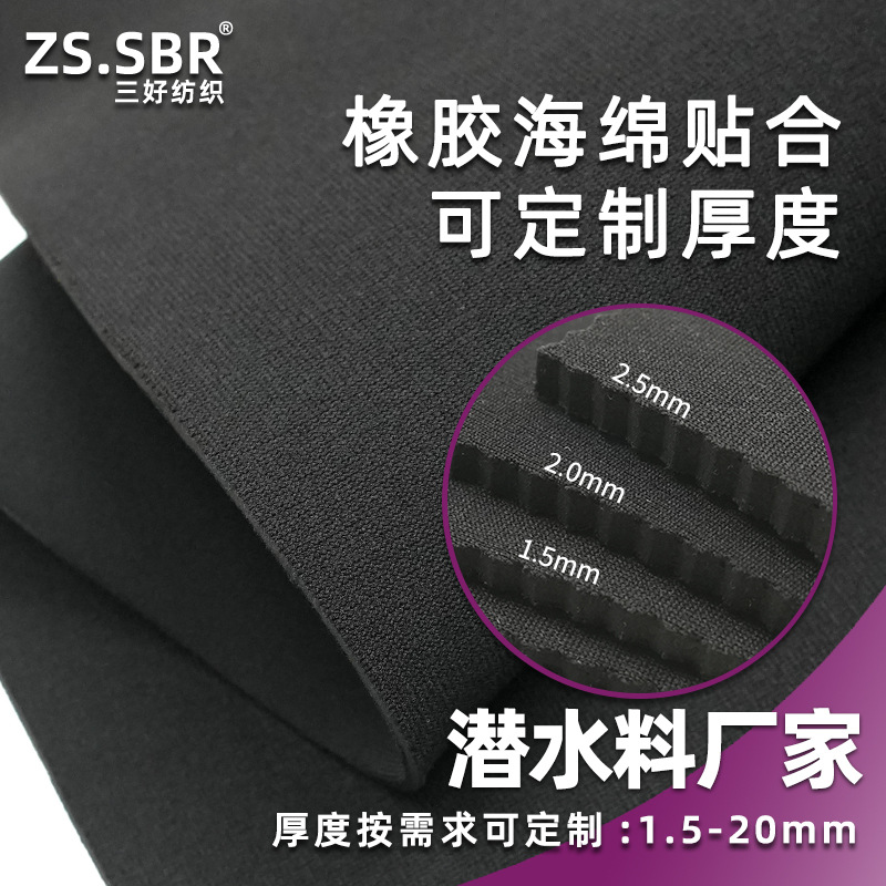 源头工厂防水布料减震SBR橡胶发泡贴合布潜水服冲浪服化妆包面料