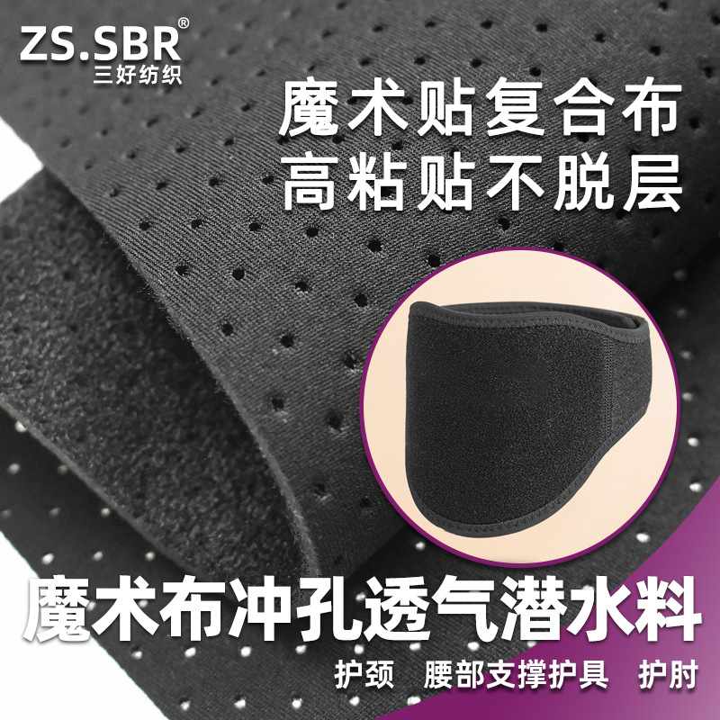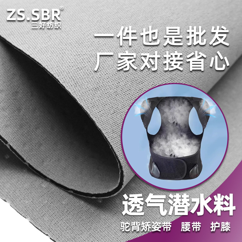 源头工厂透气全冲孔OK布贴合夹橡胶潜水面料耐磨驼背矫正背带布料