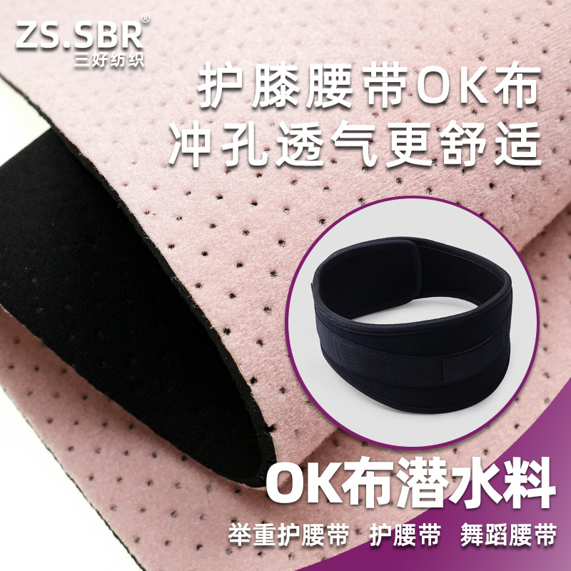 支撑护具OK粘扣冲孔透气潜水布料舒适运动防护用品举重护腰带面料