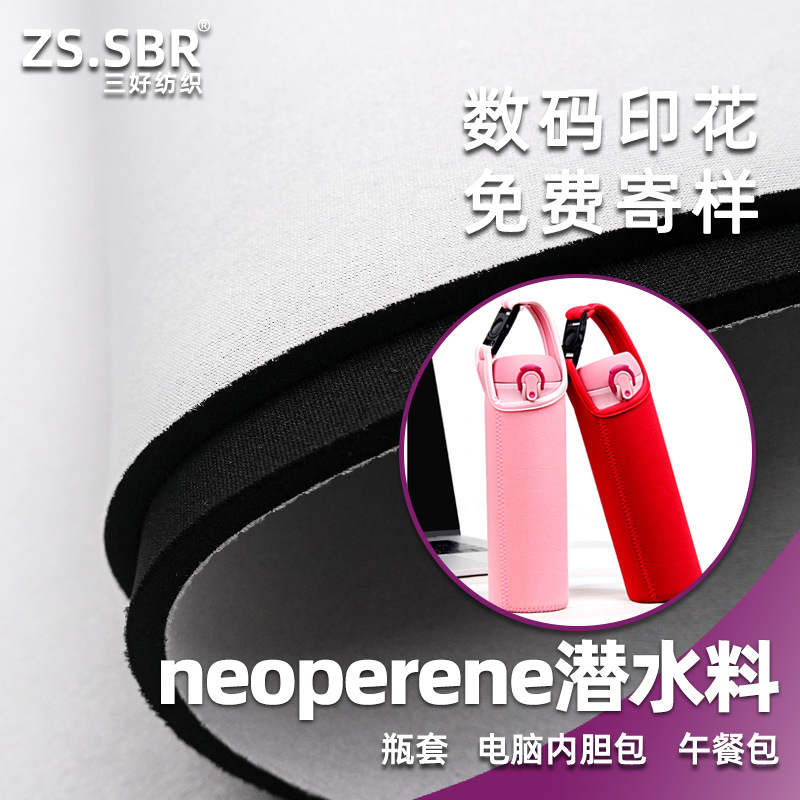 现货批发黑白色SBR潜水面料耐磨可印花杯套午餐包酒瓶套橡胶布料