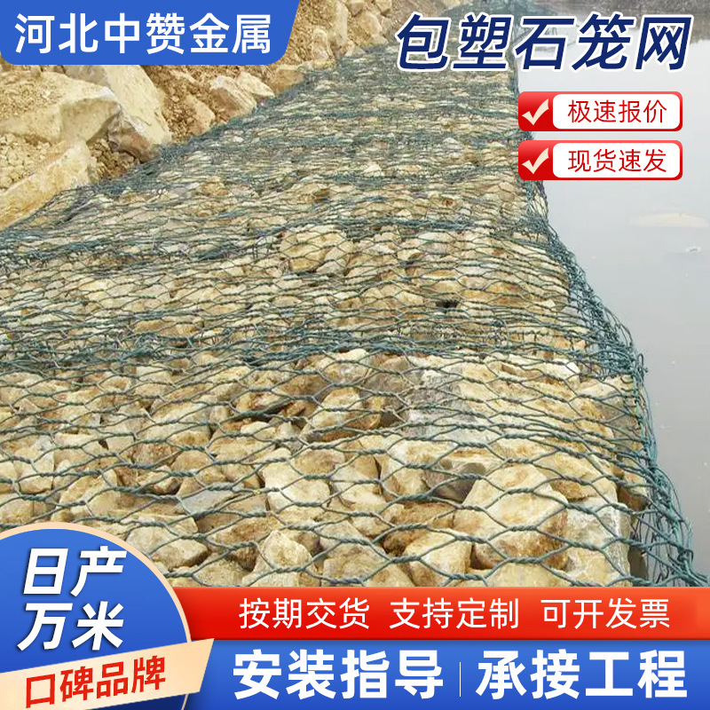 PVC包塑石笼网河道治理固滨笼铅丝格宾护坡网防汛雷诺护垫六角网