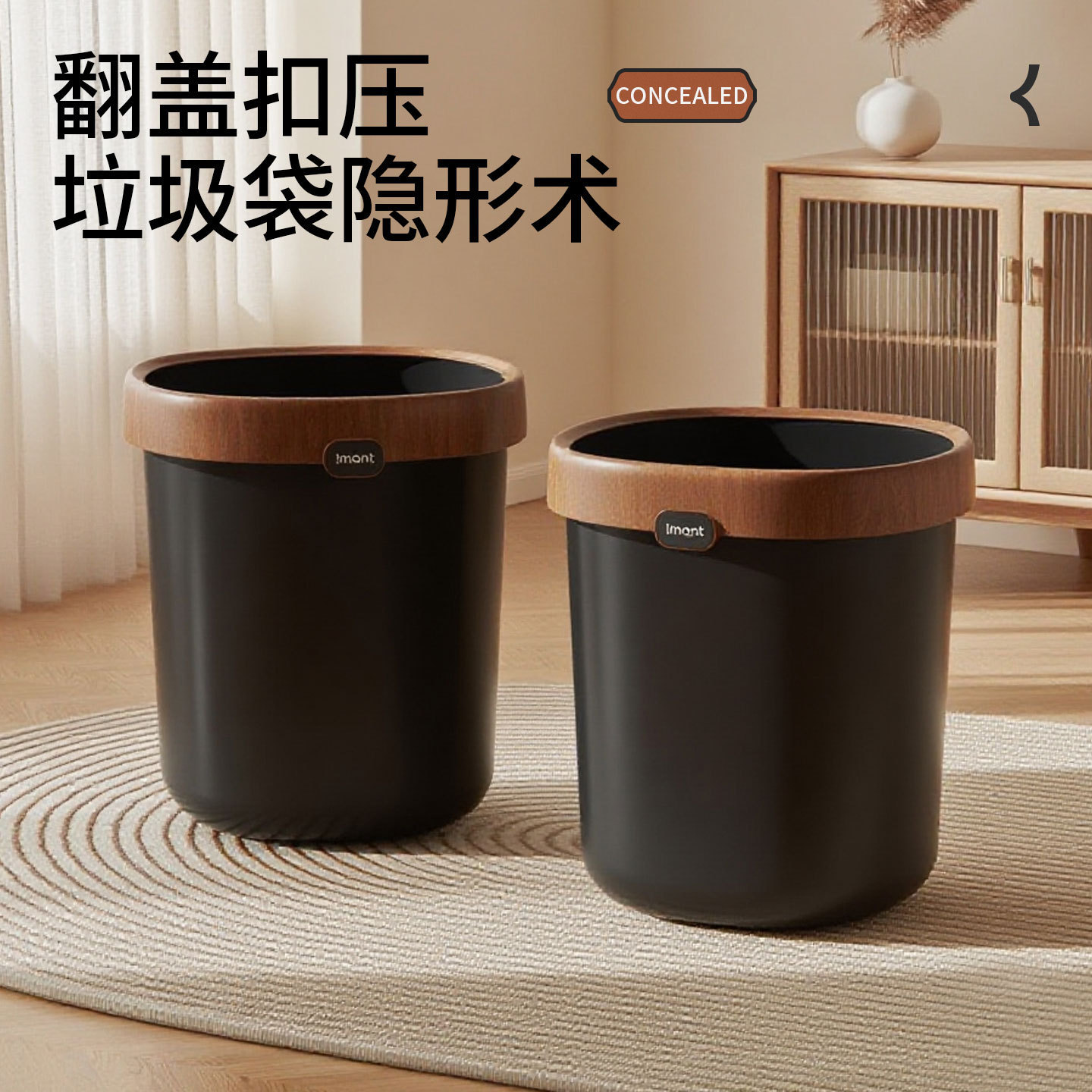 客厅高颜值垃圾桶中古风家用2025新款室内压圈一体家庭大容量纸篓