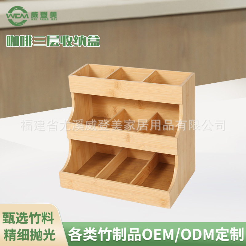竹制隔间收纳架 办公室茶水间分层储物架 咖啡茶包饮品置物整理架