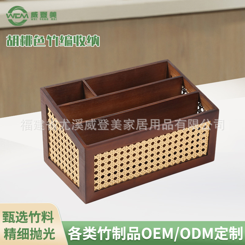 胡桃木竹编收纳盒日系桌面多格化妆品护肤品遥控器桌面收纳整理盒