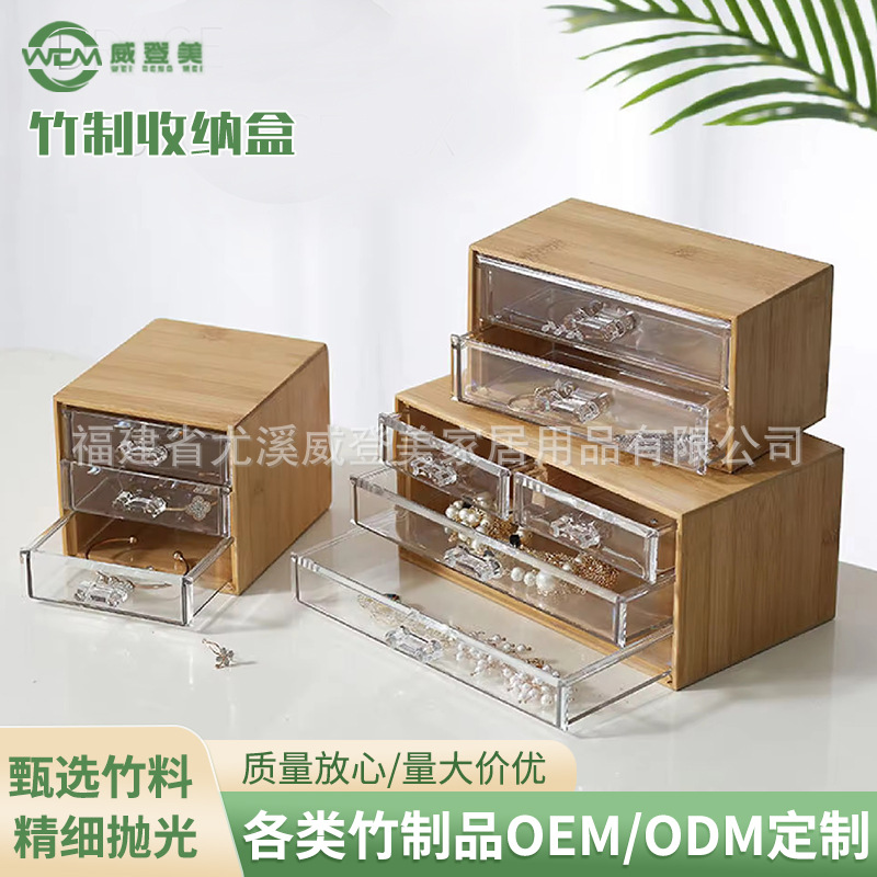 带抽屉竹制桌面收纳盒定制 家用防尘整理盒批发 化妆品首饰收纳盒