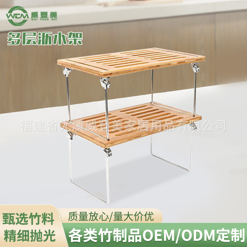 定制竹制沥水置物架可叠加双层桌面收纳架多功能易收纳折叠沥水架