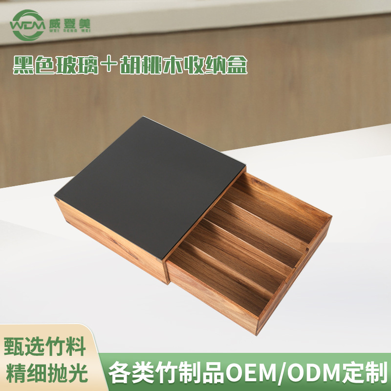 跨境外贸胡桃木抽屉收纳盒咖啡胶囊茶包抽屉型整理收纳整理盒定制