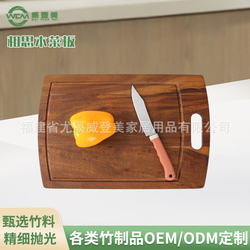 跨境相思木手提菜板长方形切菜板带水槽家用切水果多功能砧板定制