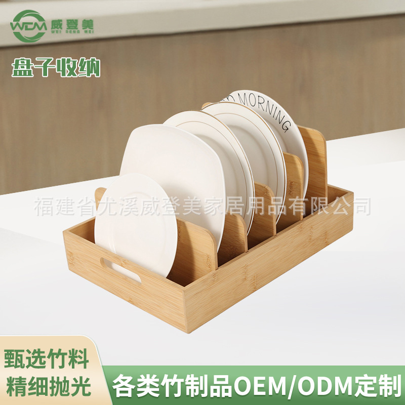 竹制分格收纳盒厨房台面可拆卸隔板盘子储物盒桌面沥水收纳整理盒