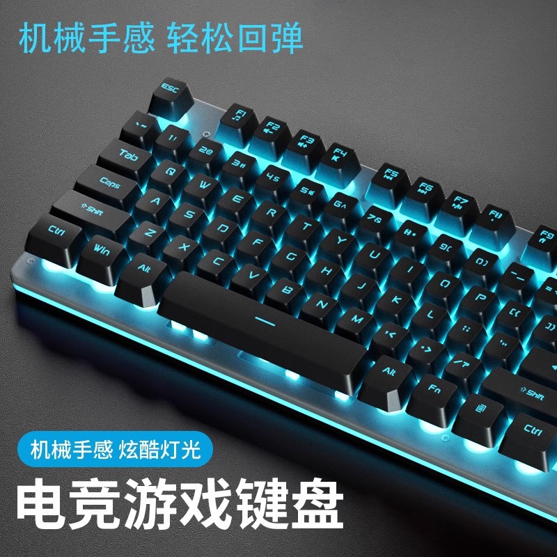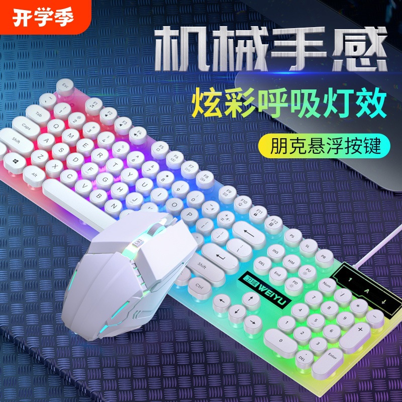有线发光键盘鼠标套装游戏电脑台式笔记本悬浮键帽机械手感USB头