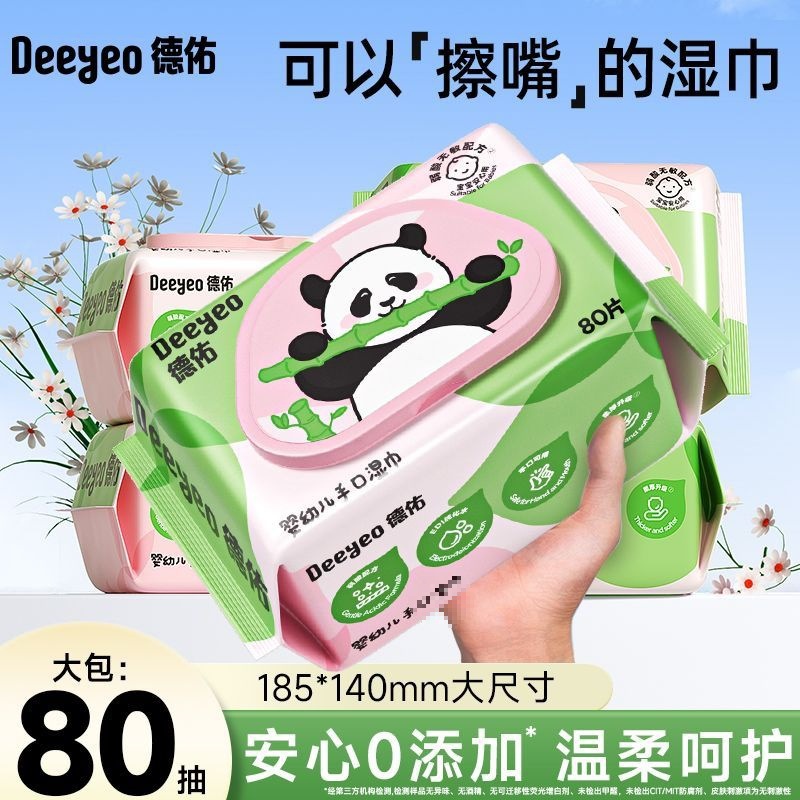 德佑婴幼儿手口湿巾婴儿学生宿舍用加厚大包80抽湿纸巾熊猫湿巾