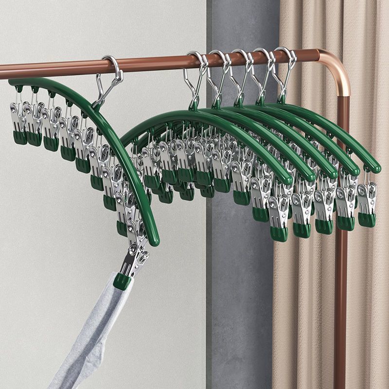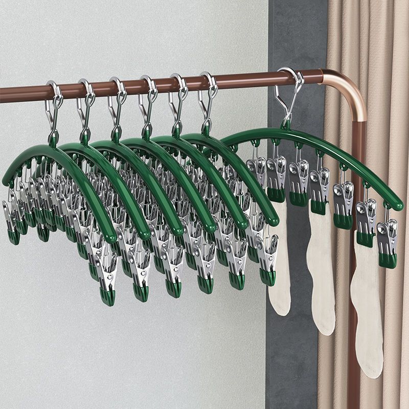 衣架多夹子晾衣服晒袜子神器衣挂防滑无痕袜夹不锈钢浸塑家用挂钩