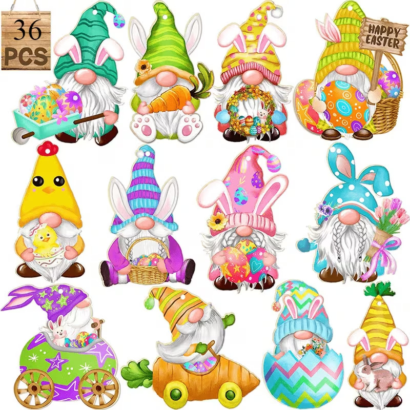 新品复活节木制小矮人悬挂饰品精灵兔子木牌春季树挂饰家居装饰品