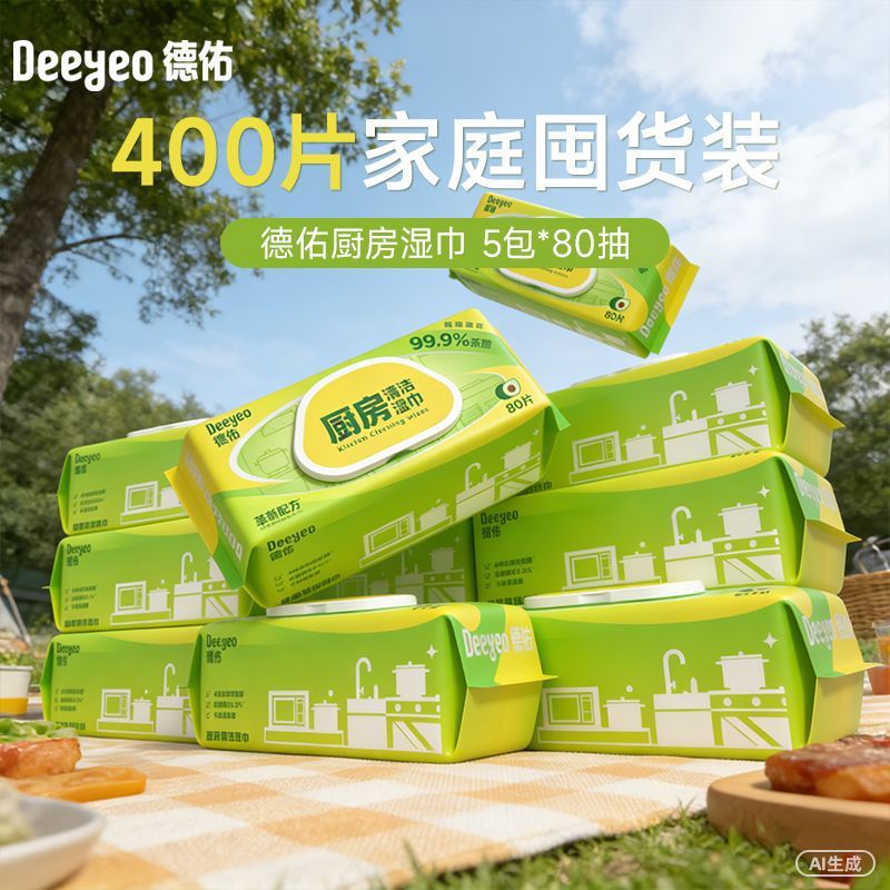 德佑厨房湿巾一次性加大加厚杀菌去油污湿纸巾家用其他