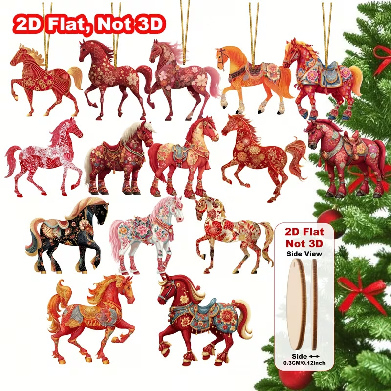 跨境新款马年木质挂饰 创意彩色2D平面木质小马节日派对家居装饰