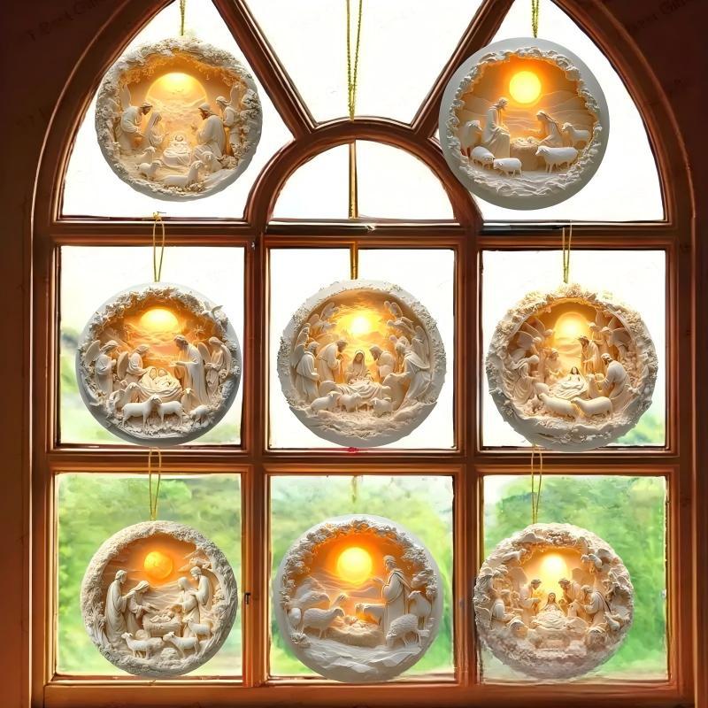 跨境新品16件2d平面降生场景祝福语庭院装饰品 派对木质挂件