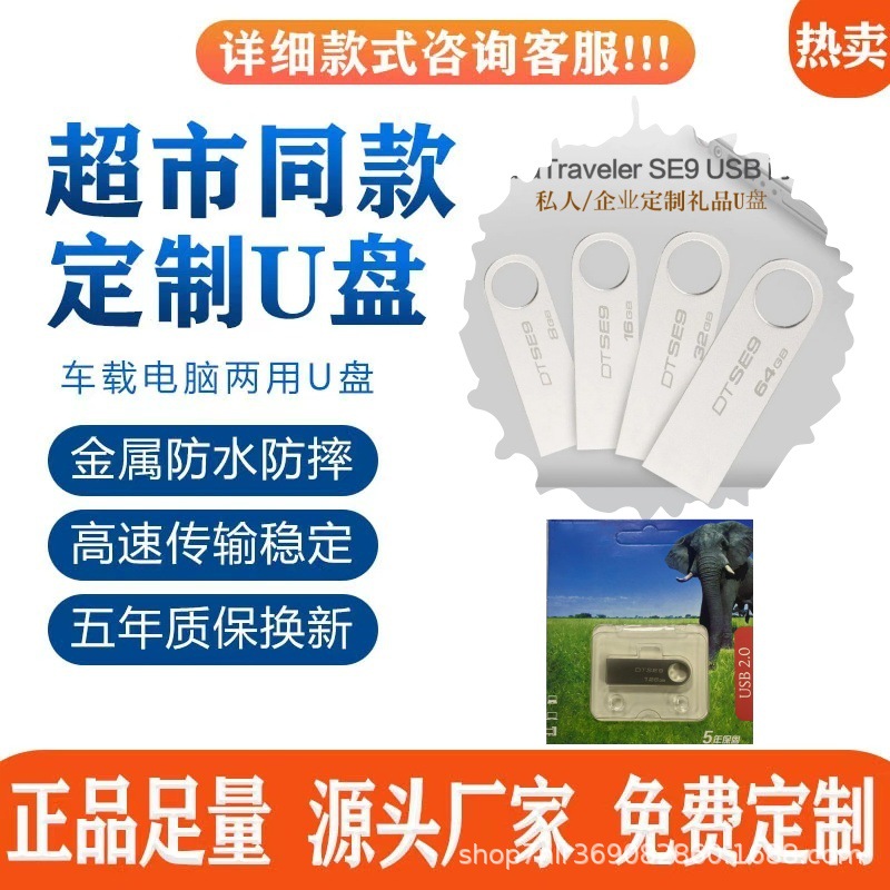 超市爆款金士[顿u盘高速SE9金属logo防水8G16G32G礼品128G优盘64G