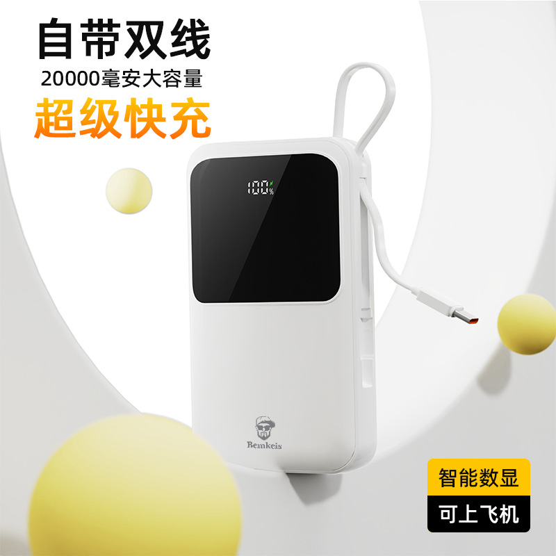 自带线充电宝快充可上飞机20000mAh大容量移动电源长续航国标3C