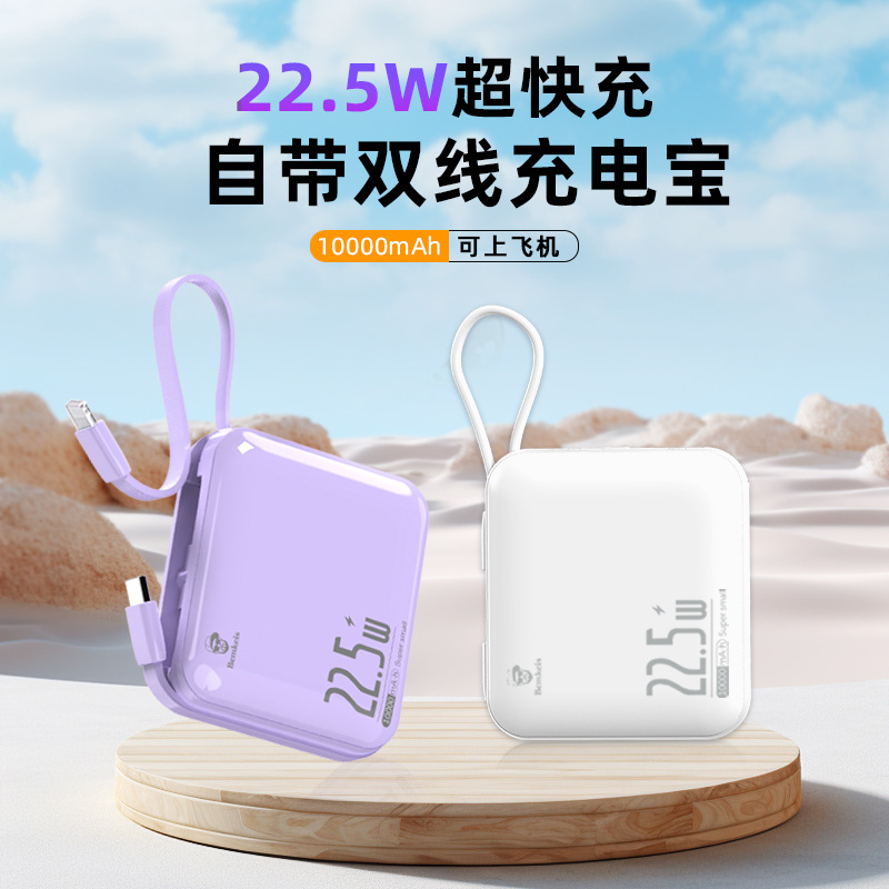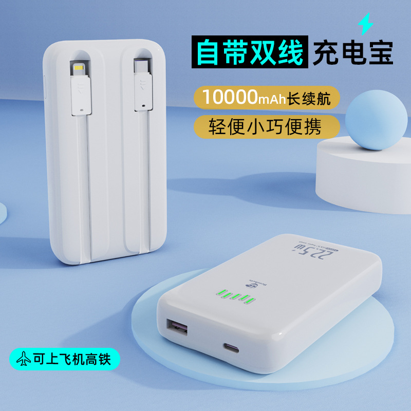 小巧便携充电宝自带线10000毫安22.5W超级快充移动电源礼品爆款