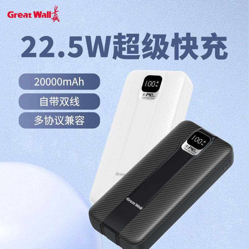 20000毫安22.5w快充移动电源自带双线数显充电宝京选同款带国标3C