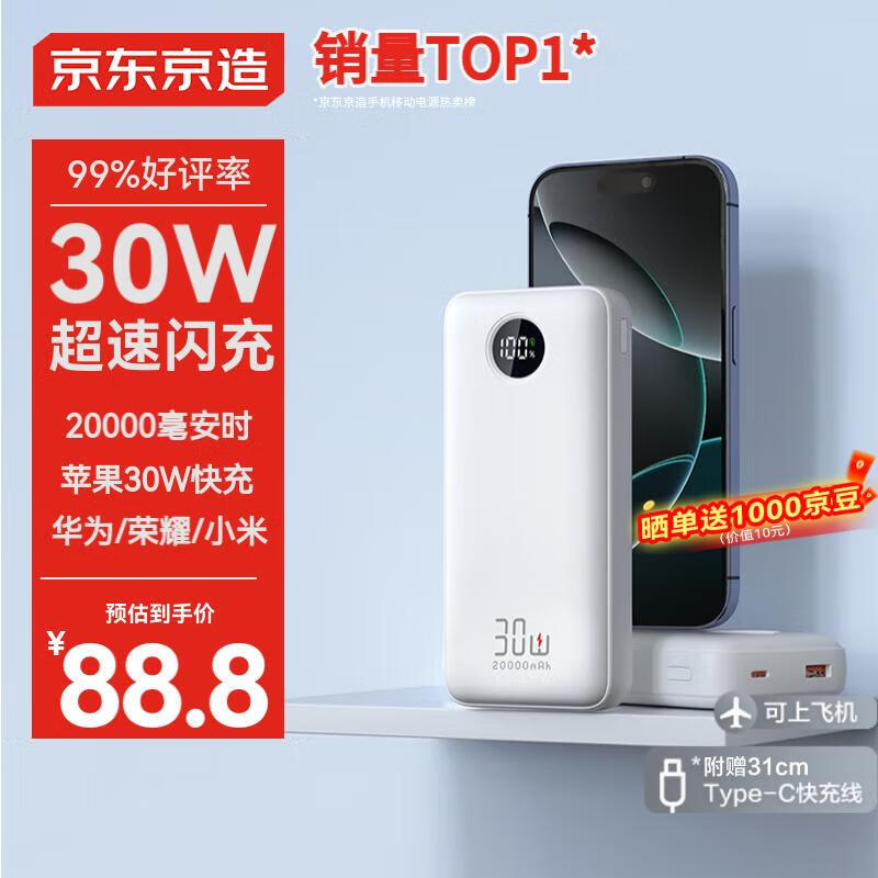 新品国标3C快充充电宝可上飞机20000毫安大容量户外移动电源便携