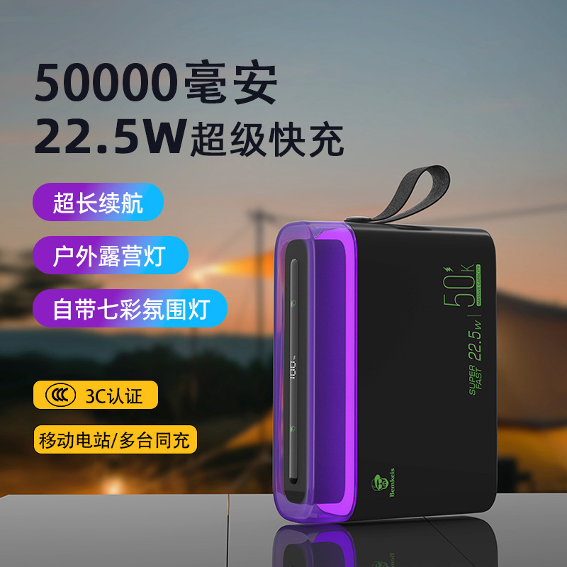 批发跨境爆款超级快充22.5W挂绳充电宝自带线便携式移动电源户外