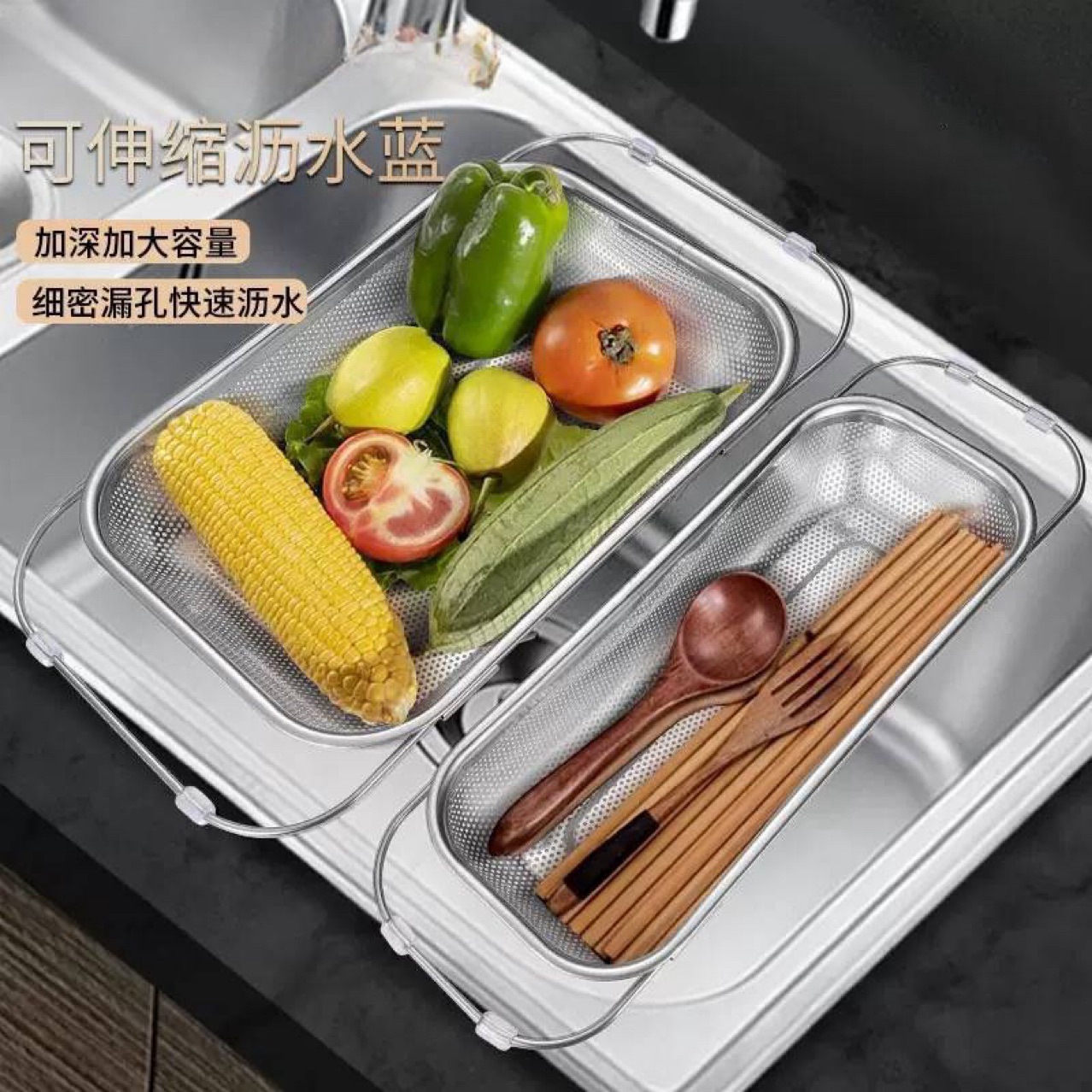 不锈钢可伸缩沥水篮迷孔加厚洗碗盆水槽沥水架果蔬碗碟沥水置物架