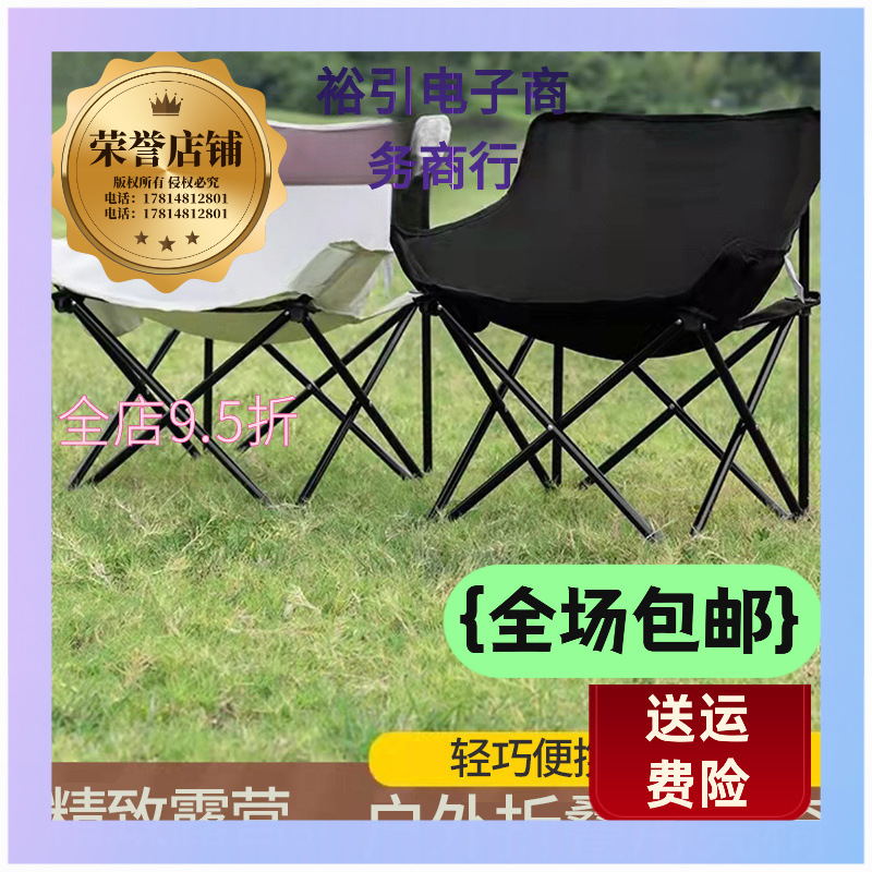 牛津布木纹露营靠背椅野营便携折叠双人椅户外包邮到家一件代发