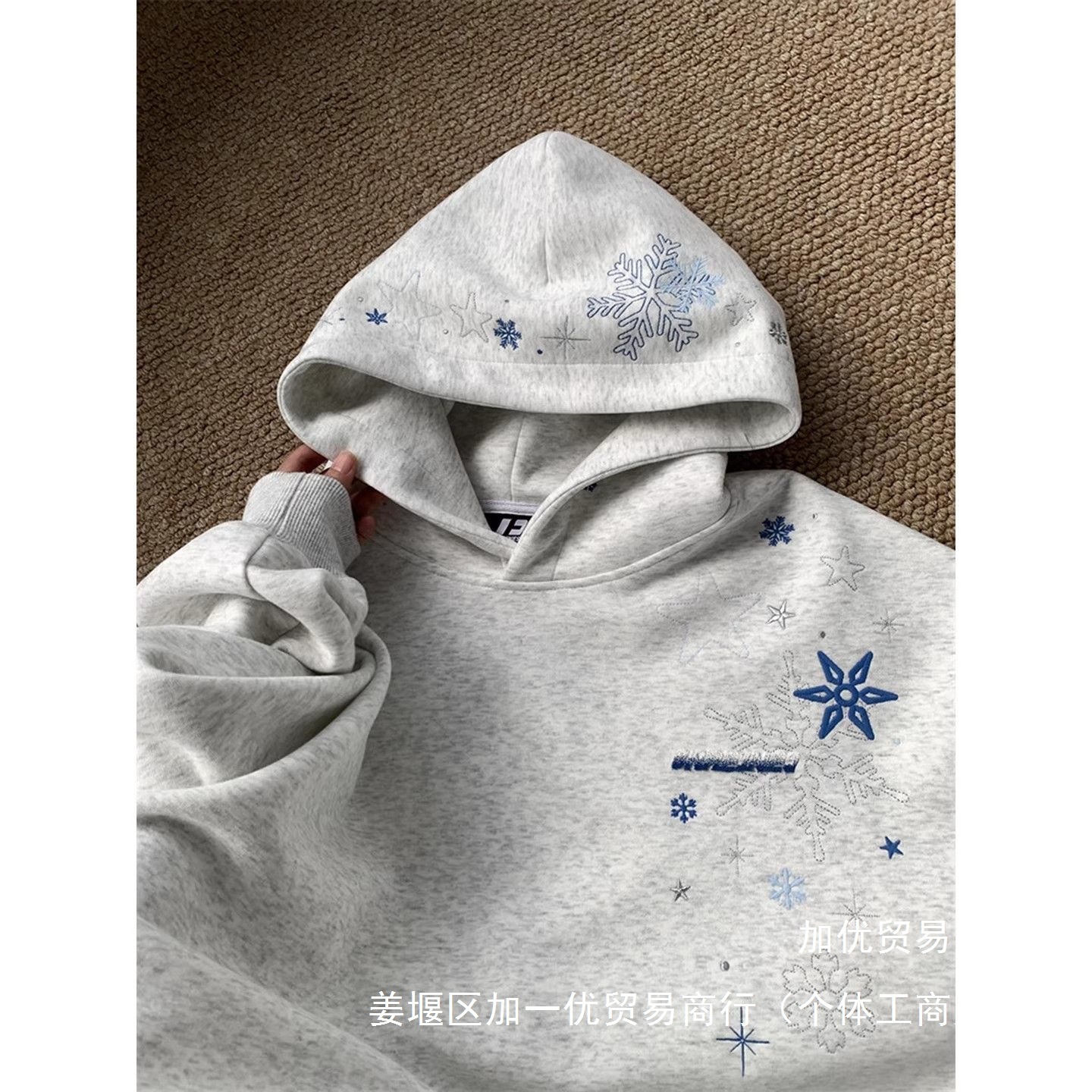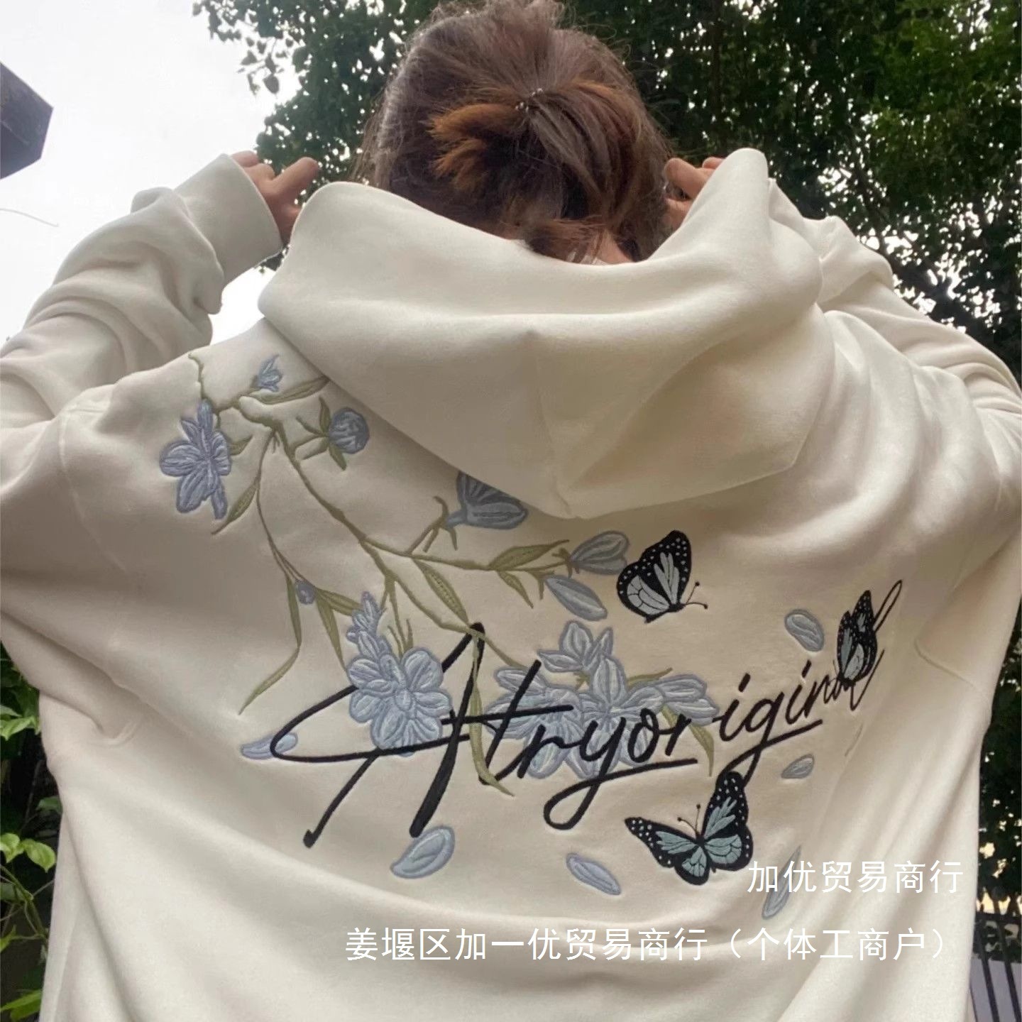 国潮牌花卉刺绣字母连帽长袖卫衣女秋冬新款重磅纯棉宽松学生批发
