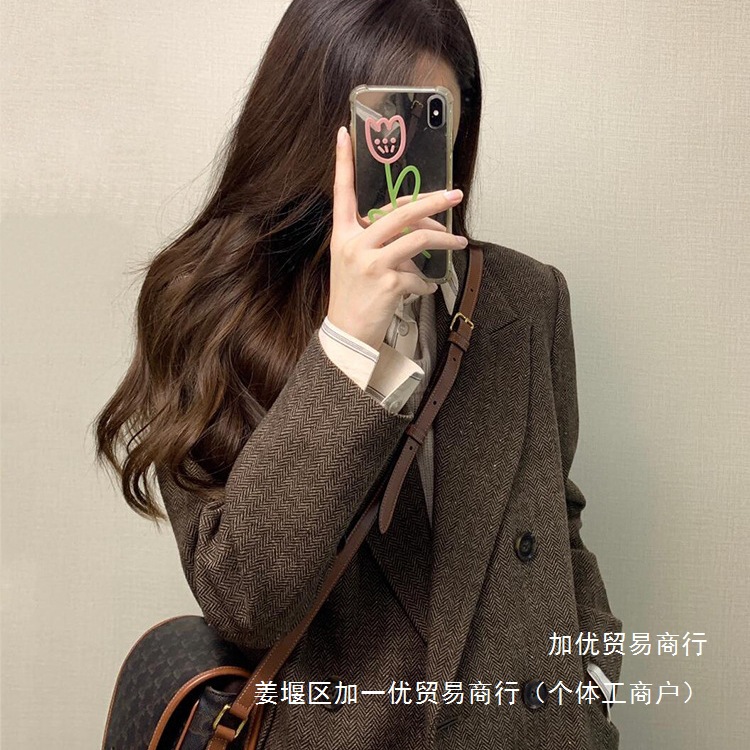 人字纹呢子大衣女秋冬2024新款毛呢外套感小个子短款韩系西装批发