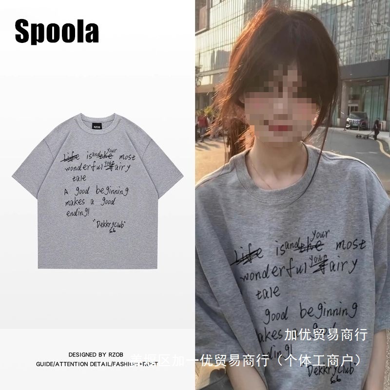 美式复古手绘字母印花短袖T恤男夏季薄款纯棉宽松ins潮牌半袖2