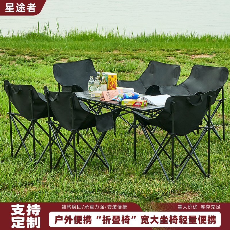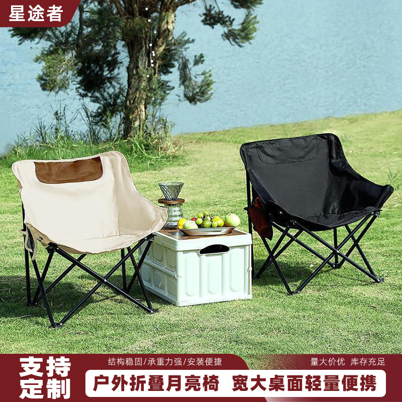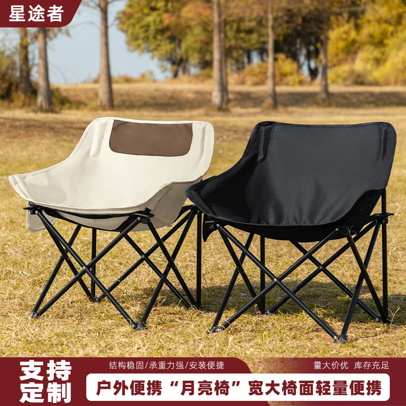 户外露营折叠椅露营钓鱼椅夜市烧烤摆摊月亮椅便携野营沙滩美术椅
