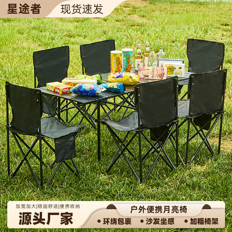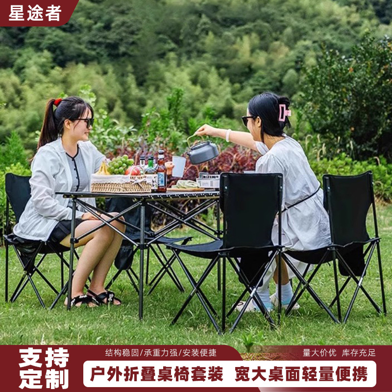 户外露营桌椅套装便携式靠背椅月亮椅蛋卷桌休闲懒人凳子折叠桌椅