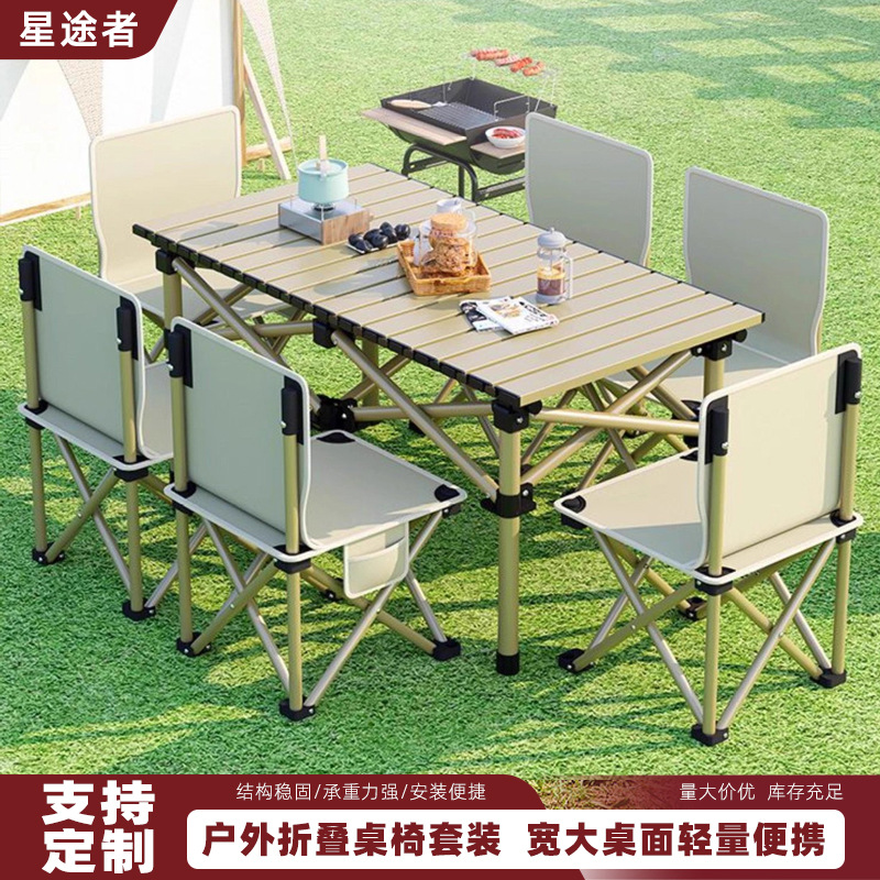 批发户外折叠露营桌椅蛋卷桌便携式野餐桌椅摆摊桌子野营桌椅套装