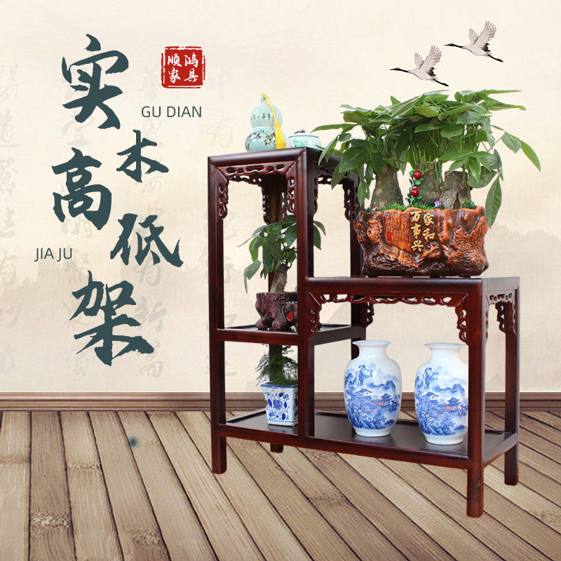 新款实木花架子中式室内多层高低植物架客厅落地式高级多层置物架