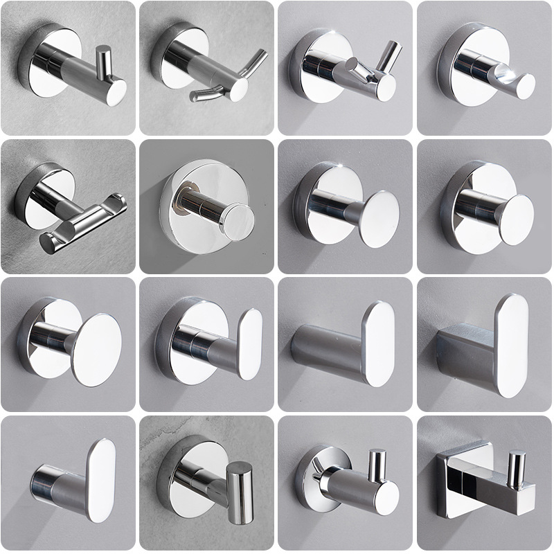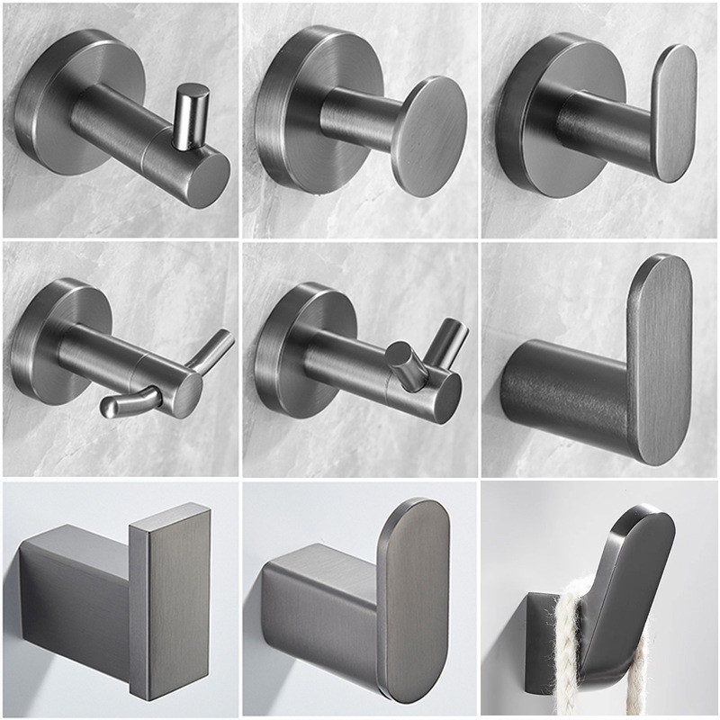枪灰衣钩免打孔挂钩304不锈钢衣帽钩排钩卫生间单钩酒店工程衣钩